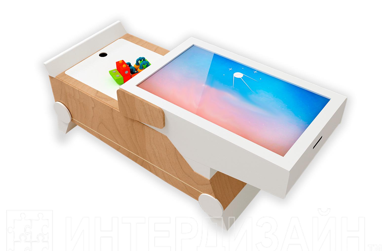1) Интерактивную панель (Full HD, мультитач 10 касаний, intel, 4 гб RAM, SSD 120 гб, win 10). Имеет специальную крышку для безопасного хранения или создания полноценного рабочего стола.
