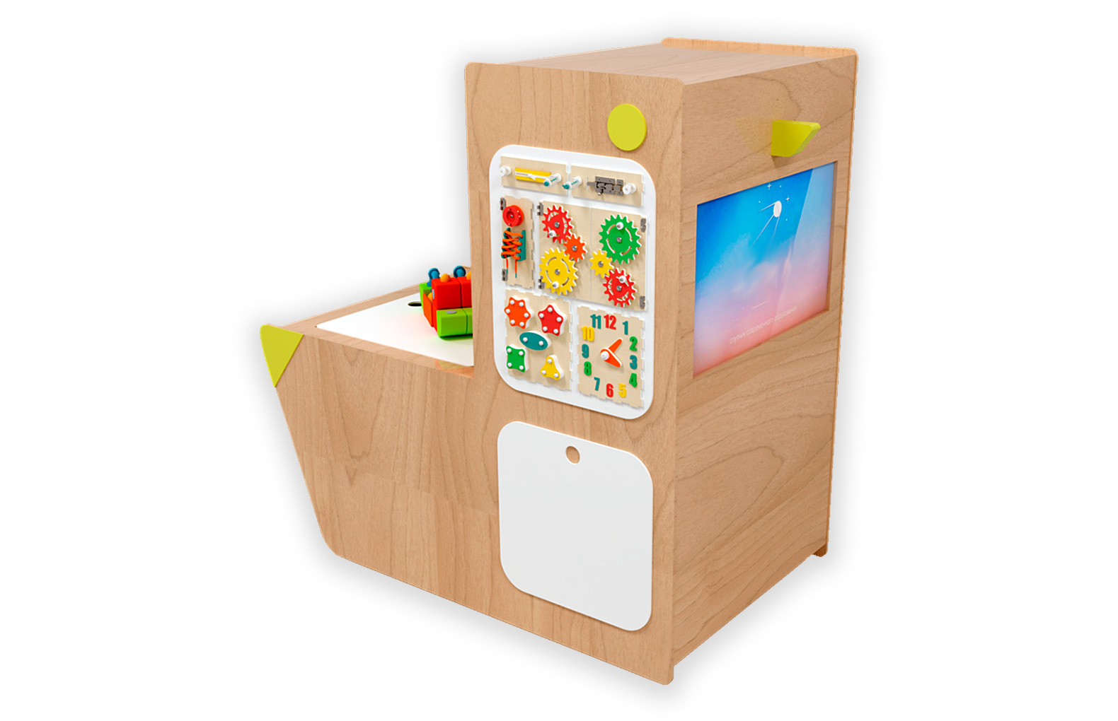 4) Развивающий бизиборд АЛМА на боковой части комплекса.