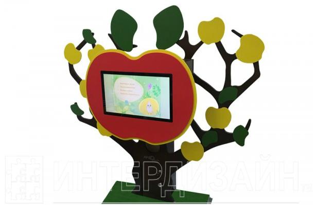 Мультимедийный сенсорный логопедический комплекс со специализированными играми и занятиями для развития речи предназначен для организации индивидуальной и групповой работы с дошкольниками логопедов, воспитателей, психологов, учителей начальных классов, педагогов дополнительного образования и коррекционных классов. Выполнен в виде сказочного дерева из любимой сказки детей «Лукоморье». Дерево имеет съемные и взаимозаменяемые элементы: яблоки и листья разного цвета для определения времени года. Имеют магнитные крепления, на которые можно вешать дидактические карточки. Ствол имеет отверстие с тактильным мешочком, имитирующее скворечник.