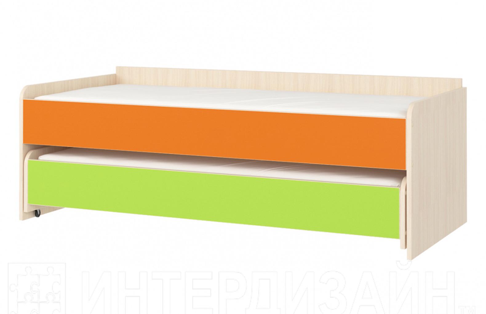 Кровать детская 2-х ярусная, трансформируется из одной в два спальных места. Экономит пространство .Кровать изготовлена из ЛДСП 16 мм, все детали обработаны кромкой ПВХ. Кровать представляет собой систему выдвижных элементов. Единая конструкция представляет собой совокупность двух кроватей, собирающихся по типу «матрешки». Лежак представляет собой каркас соединенный планками из ЛДСП шириной не менее 50 мм. Сверху лежак кроватей закрыт листом фанеры. Задние бортики кроватей выступают, что при выдвижении позволяет кроватям цепляться друг за друга. Нижние части опор(боковин) кроватей оборудованы колесными опорами. Все углы закруглены. Цвет: по согласованию с заказчиком. Вся продукция сертифицирована