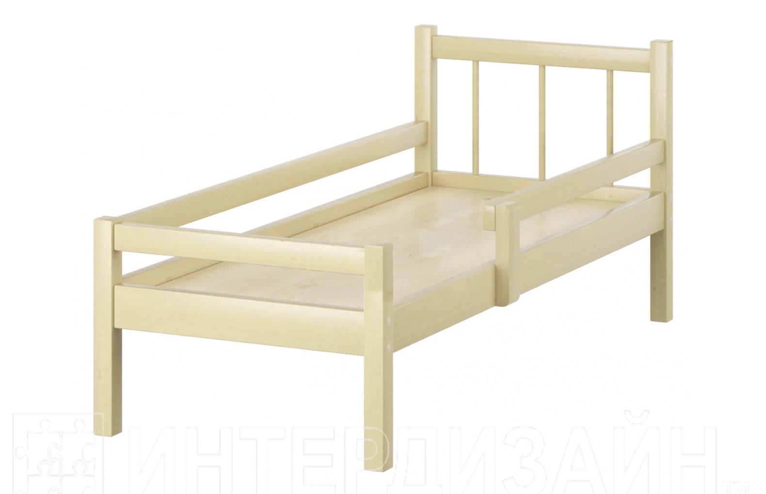 Кровать одноярусная "Соня-2"с бортами. Кровать изготовлена из массива натурального дерева (сосна). Дно кровати из фанеры толщиной 4 мм. Кровать детская оборудована дополнительными съемными бортами для ограждения ребенка от падения . Габаритные размеры, 1400х600х600 мм.