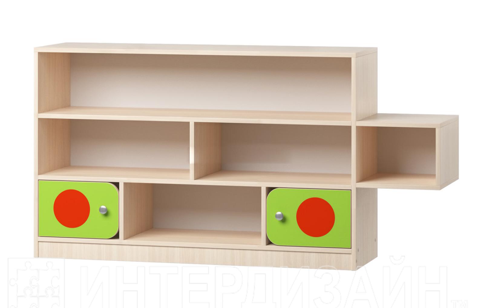 Стеллаж "Вагон к паровозу" размерами: длина - 1100 мм, глубина - 340 мм, высота -720 мм. Предназначен для хранения игрушек, книг, наглядных пособий, дидактического материала, наборов детского творчества и т.д. Стеллаж изготовлен из ЛДСП 16 мм, все торцы обработаны кромкой ПВХ . Выступающие углы скруглены по радиусу 50 мм. Продукция имеет надлежащие сертификаты качества.