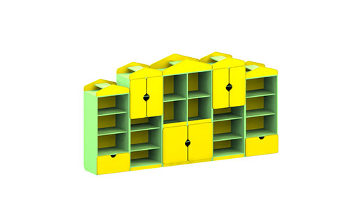 Стенка это универсальная мебель для детских садов и школ. Она занимает максимум пространства, при этом обладает большой универсальностью. Совмещает как открытые полки, дети смогут хранить там свои подделки, игрушки, книжки и сувениры. Так и закрытые шкафчики, малыши смогут положить туда свои курточки, обувь и другие личные вещи. Стенка выполнена в оригинальном дизайне, специально разработанном под учебные заведения. Сочетание желтого и зеленого будет радовать не только детей, но и взрослых.