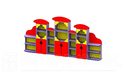 Стенка это универсальная мебель для детских садов и школ. Она занимает максимум пространства, при этом обладает большой универсальностью. Совмещает как открытые полки, дети смогут хранить там свои подделки, игрушки, книжки и сувениры. Так и закрытые шкафчики, малыши смогут положить туда свои курточки, обувь и другие личные вещи. Стенка выполнена в оригинальном дизайне, специально разработанном под учебные заведения. Сочетание красного и фиолетового будет радовать не только детей, но и взрослых.