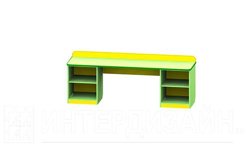 Уголок предназначен для размещения на нем конструкторов разных видов. Для этого имеются тумбы с полочками по бокам. Площадь столешницы такова, что помещает конструктор из многих деталей и дает детям возможность на нем играть.