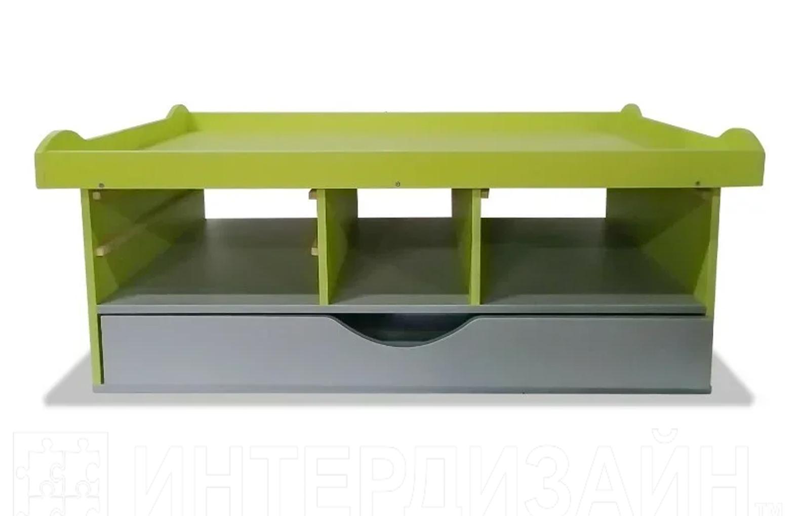 В комплекте:Столешница с бортиками; Глубокие полки – 3 шт.; Широкий выдвижной ящик.