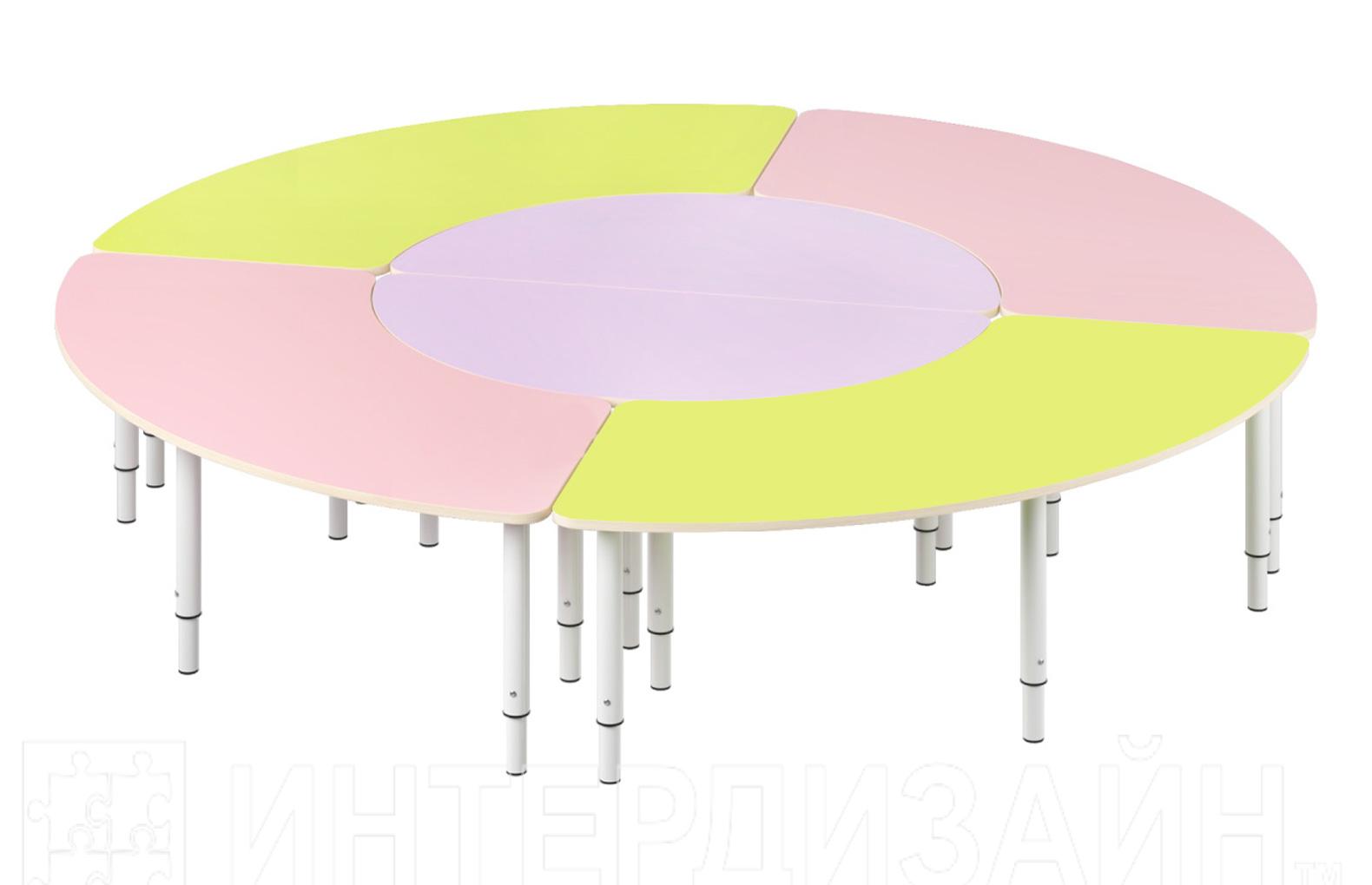Стол модульный.Диаметр:1600 мм. Состоит из 6-ти столиков. Регулировка ножек: 460-580мм,Изготовлен из ЛДСП толщиной 16 мм, все торцы окантованы кромкой ПВХ.