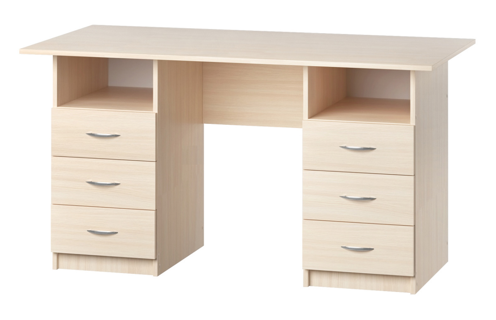Стол 2-х тумбовый-2 Материал исполнения: ламинированная ДСП толщиной 16 мм, цвет — дуб молочный ,размер 1400*700*750 мм,отделка кромкой ПВХ . Цветовое разрешение возможно по желанию заказчика.