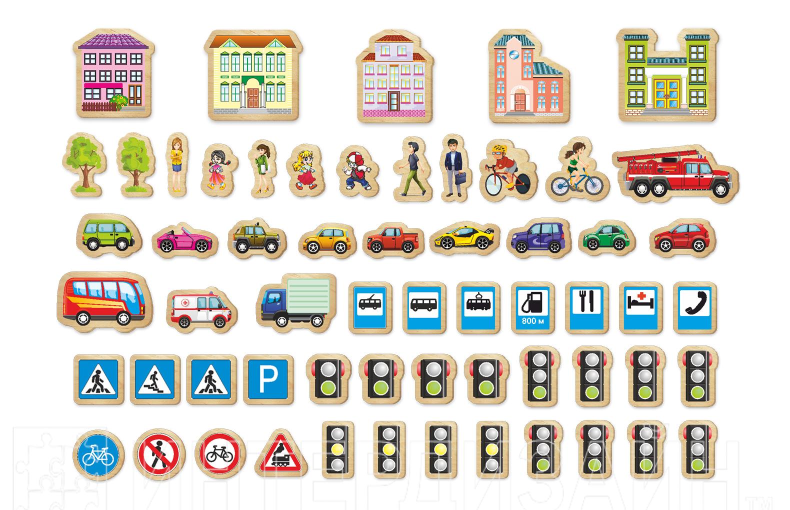 Комплект деревянных магнитов ПДД (60 шт) Эко формат! - Описание