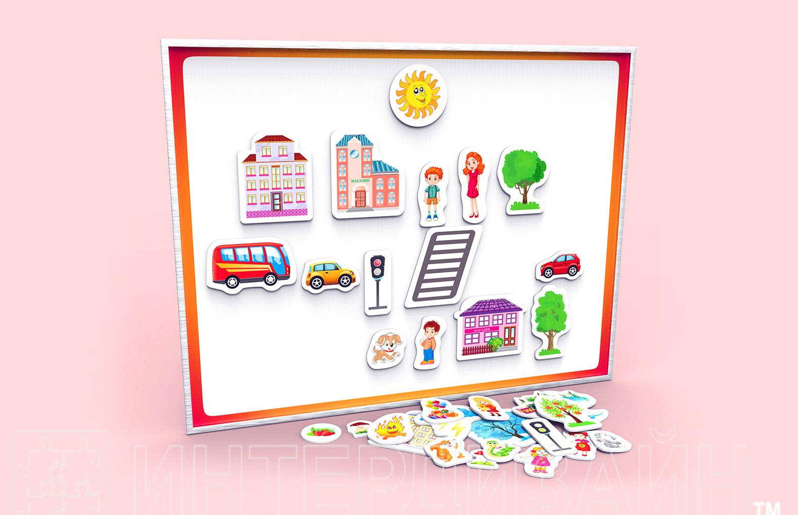 Все что Вам необходимо-это разместить магнитные фигурки на магнитной поверхности (доске, холодильнике и т.д.), выбрав игру, согласно методическим рекомендациям, которые входят в набор: