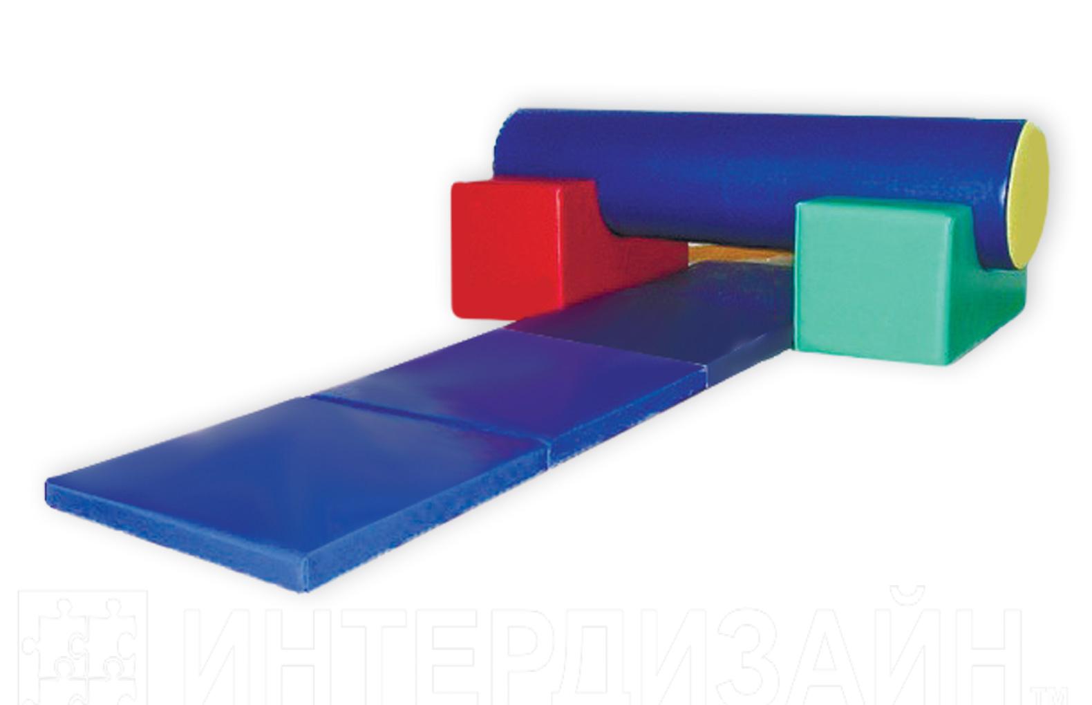 В комплекте:7 модулей, Мостик 30*50*30, d-30-2шт, Цилиндр h-100.d-30 - 1 шт, дорожка д/ кувырков 200*50*5-1шт