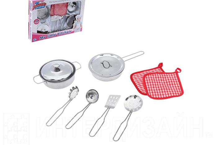 Набор металлической посуды состоит из семи предметов, которые позволят ребенку разыграть замечательную сюжетную игру. Теперь девочка сможет приготовить обед для всех своих кукол, используя предметы комплекта и прихватку-варежку, которая убережет руки от ожогов. Кастрюля и сковорода, а также половник и лопатка сделаны из металла, поэтому они прослужат долгое время.