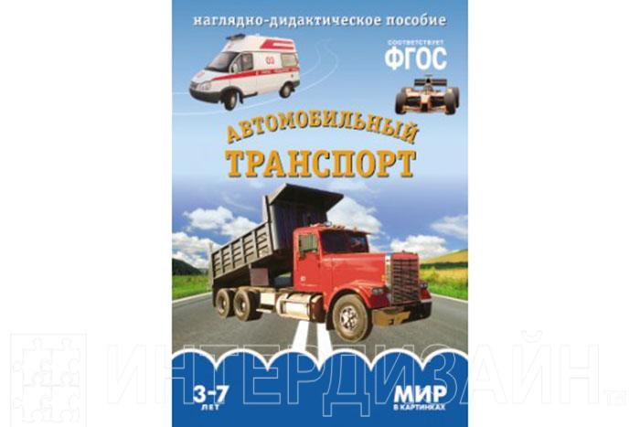 Наглядно-дидактическое пособие "Автомобильный транспорт" из цикла "Мир в картинках" - 8 красочных реалистичных изображений основных транспортных средств, выполненных на листах плотного глянцевого картона формата А4.