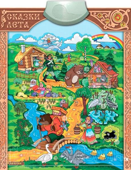 Невероятно интересный и занимательный говорящий плакат «Сказки лета» способен надолго увлечь в мир сказок и чудес целую группу малышей в детском саду. Такой плакат станет прекрасным помощником воспитателя, который сможет с легкостью доверить этому чудо-плакату рассказать малышам добрые русские сказки, исполнить замечательные песенки и продекламировать стихи.