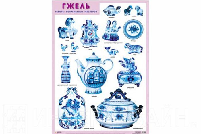 Плакат Гжель. Работы современных мастеров - красочный обучающий плакат.