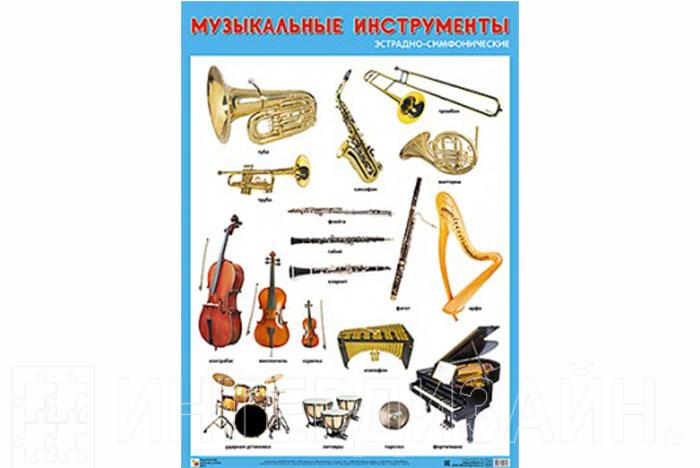Плакат Музыкальные инструменты эстрадно-симфонического оркестра - Описание