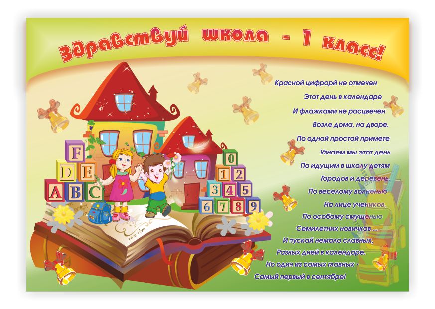 Виниловый плакат "Здравствуй школа!" порадует Вас и Ваших детей в праздник первоклашек.