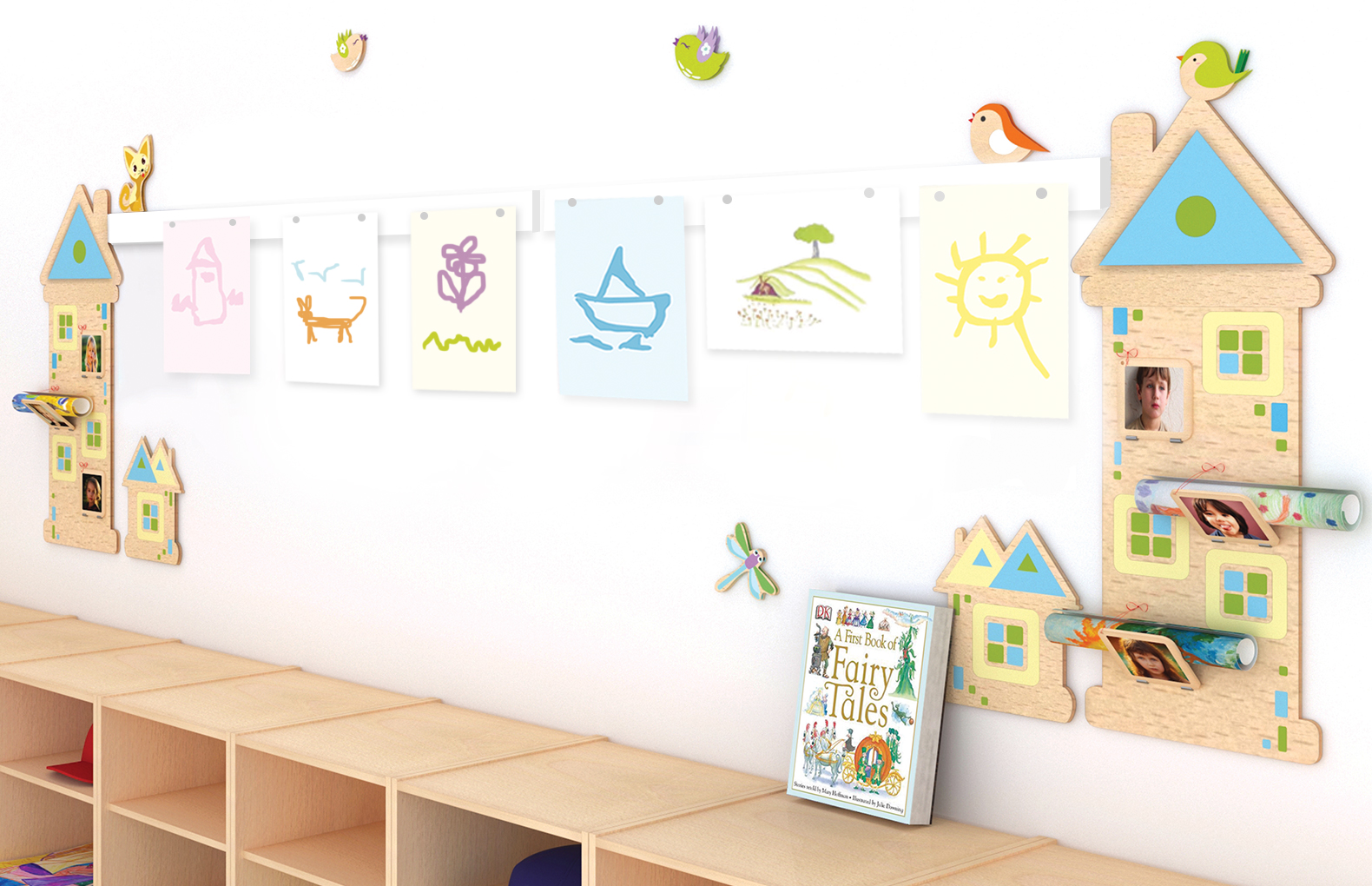 Рисунки крепятся при помощи магнитов на магнитную панель белого цвета.
