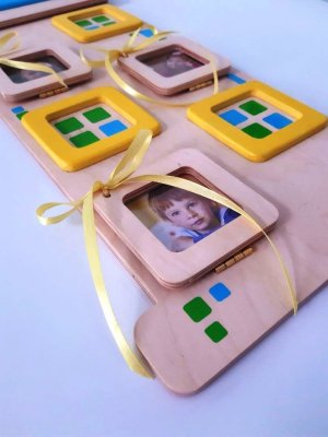 Композиция позволяет размещать рисунки, полезную информацию, фотографии. Кроме того, окошки домика позволяют разместить информацию о проведенных мероприятиях и праздниках.