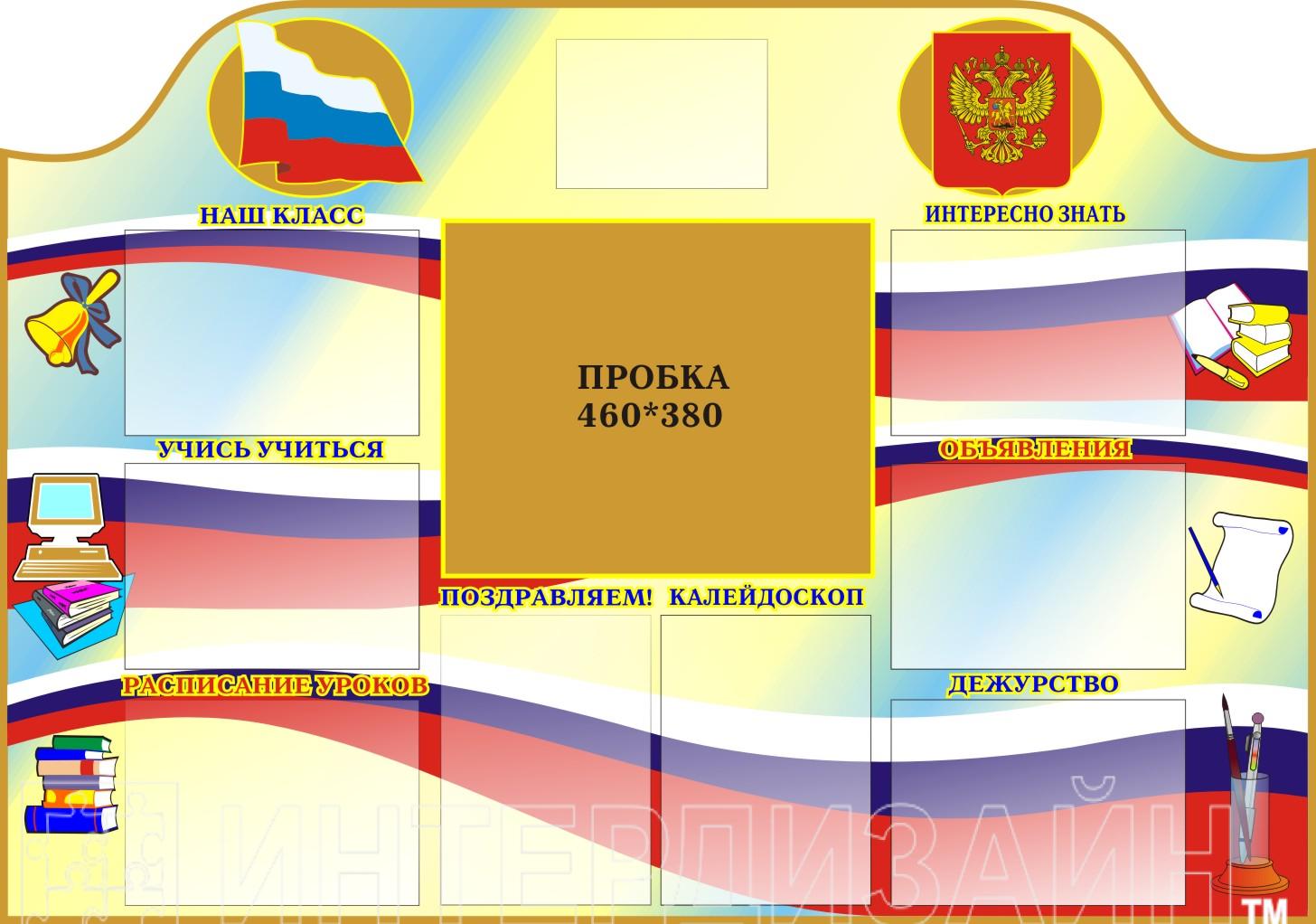 Содержит государственную символику ,карман А5 для фотографии класса, карман А4 Наш класс, карман А4 Интересно знать, карман А4 Учиться, учиться, карман А4 Объявление, карман А4 Расписание занятий, карман А4 Дежурство, карман А4 Поздравляем, карман А4 Калейдоскоп.