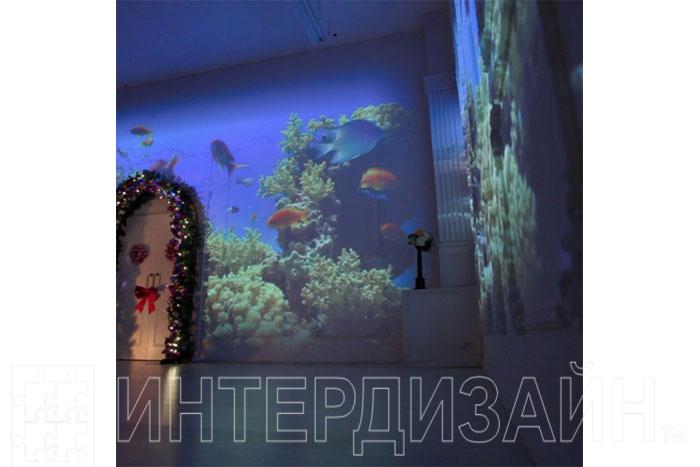 Проекционный дизайн – это реалистичные проекции (более 548 эффектов), которые Вы можете выбирать самостоятельно, а так же, устанавливать порядок воспроизведения и записывать собственные ролики, презентации, тексты и прочее. За счет уникальной разработки, проекция позволяет фиксировать эффекты на каких-либо предметах: Прямо на стене идет снег, который собирается в сугробе на деталях интерьера (картины, полочки), растут цветы, летают бабочки только в тех местах, где Вы пожелаете, сыпятся шарики для сухого бассейна, с которыми можно играть, плавают морские обитатели, горит очаг или Прямо из камина выпрыгивает дед мороз. Можно ограничить области проекции, например, картины, арки, проемы, элементы декора — на них проекция не будет падать. Среди эффектов: природа, море, подводный мир, пейзажи, животные, космос, небо, тематические эффекты на праздники, цветы, огонь, снег, вода, салюты, абстракции и многое другое.