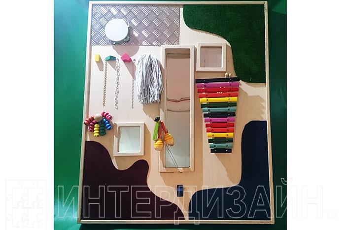 Тактильная панель с функциями зрительной и звуковой стимуляции, развития мелкой моторики, подходит для игровой терапии. Размеры позволяют одновременно играть с ней нескольким детям.