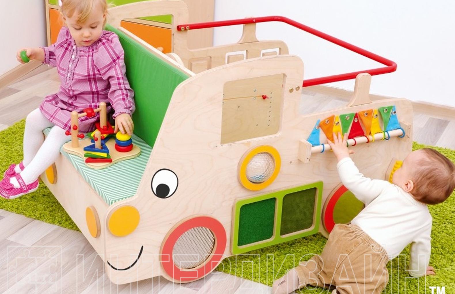 Включает в себя ряд сюрпризов для малыша: *подвижный руль с коробкой передач и рога *подвижные элементы *материалы различной структуры *вращающиеся деревянные ролики с различными текстурами *подвижные элементы помогают психомоторному развитию ребенка *металлическая труба с раздвижными деревянными элементами *стенд. Автомобиль будет стимулировать ребенка для творческой игры, позволит изучить новые формы, фактуры, материалы и звуки. Он стимулирует чувство зрения, осязания и слуха.