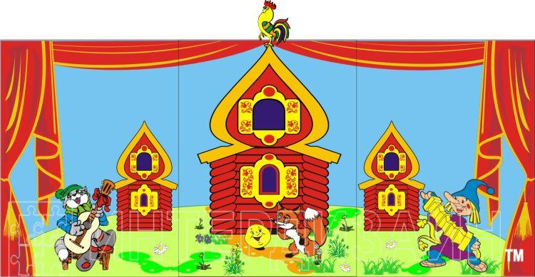 Небольшая ширма для кукольного театра, отлично подойдет для начинающих актеров и режиссеров. Яркие краски привлекают зрителя и не дают заскучать Стенд изготовлен из пластика ПВХ толщиной 3 мм. Изображение наносится непосредственно на пластик.