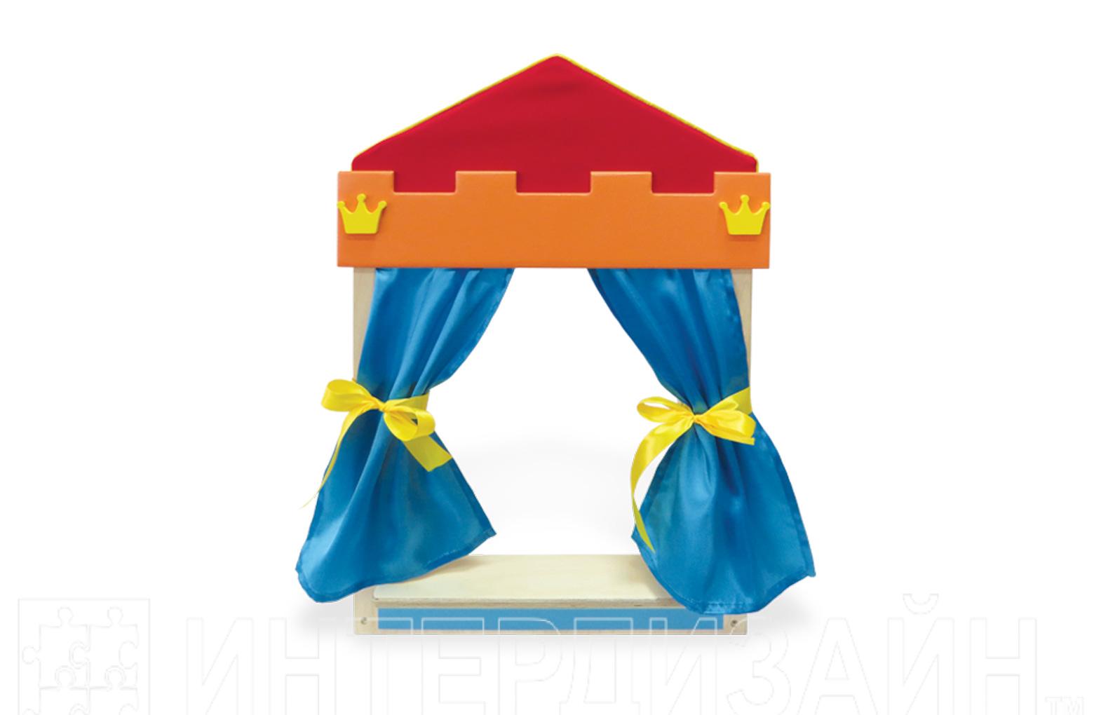 Ширма выполнена в стиле сказочного замка, в котором, можно разыграть множество сценок. Детки с радостью будут принимать участие в постановках, ведь с такой ширмой создается атмосфера настоящего кукольного театра.