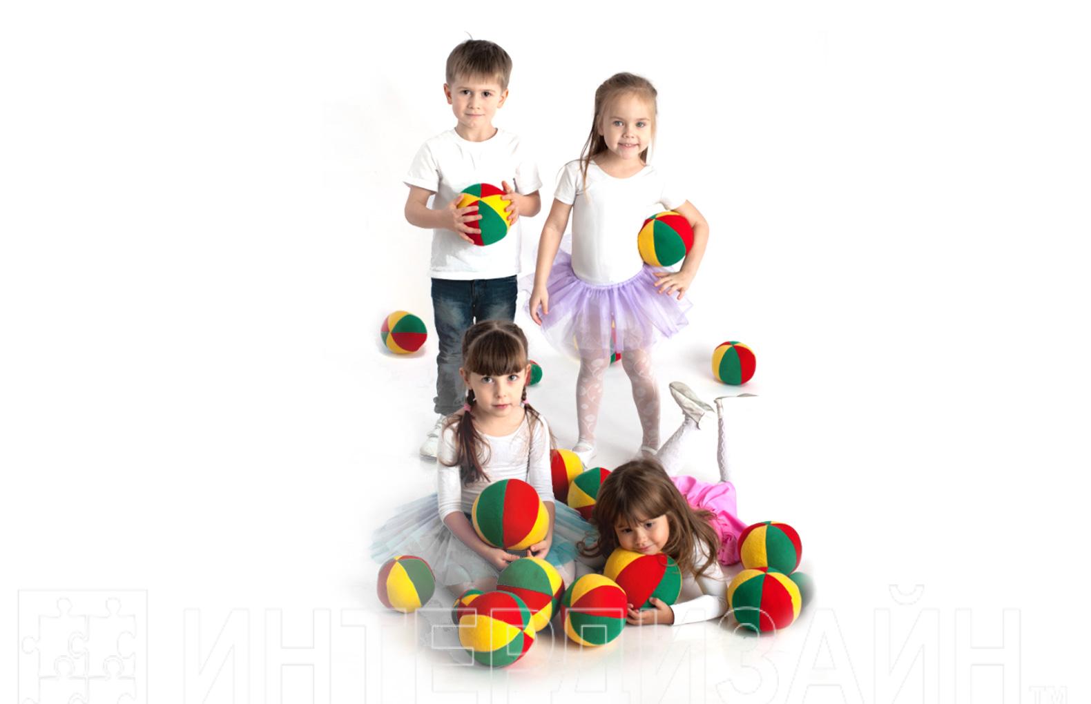 В набор входит 5 цветных мячей( d 8см, d 10см, d 12см, d14см, d16см)