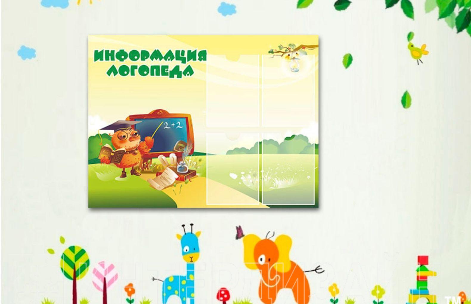 Эко-стенд на холсте «Информация логопеда» очень востребованный стенд в дошкольных учреждениях и детских садах. Ведь многие дети нуждаются в консультации этого специалиста. На замечательно оформленном стенде родители могут найти следующую информацию:
