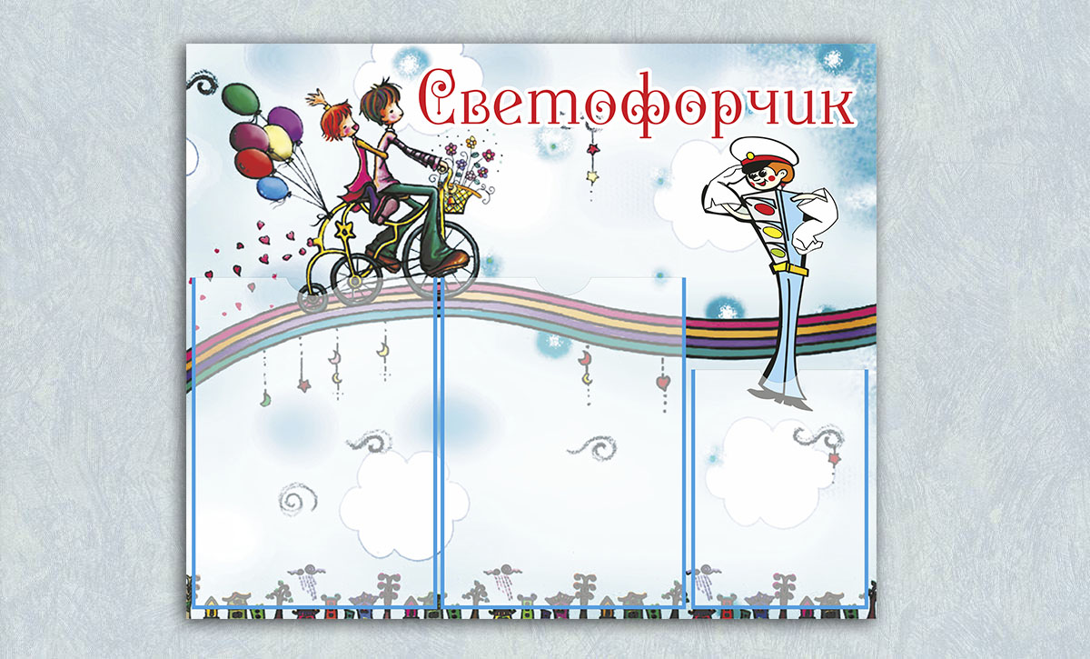 Конструкция оборудована прозрачными карманами, где размещают информацию или красочные картинки о правилах дорожного движения, безопасности на улице города. Стенд на холсте «Светофорчик» поможет проводить воспитательную работу с дошкольниками, учениками направленную на сохранение жизни и здоровья детей.
