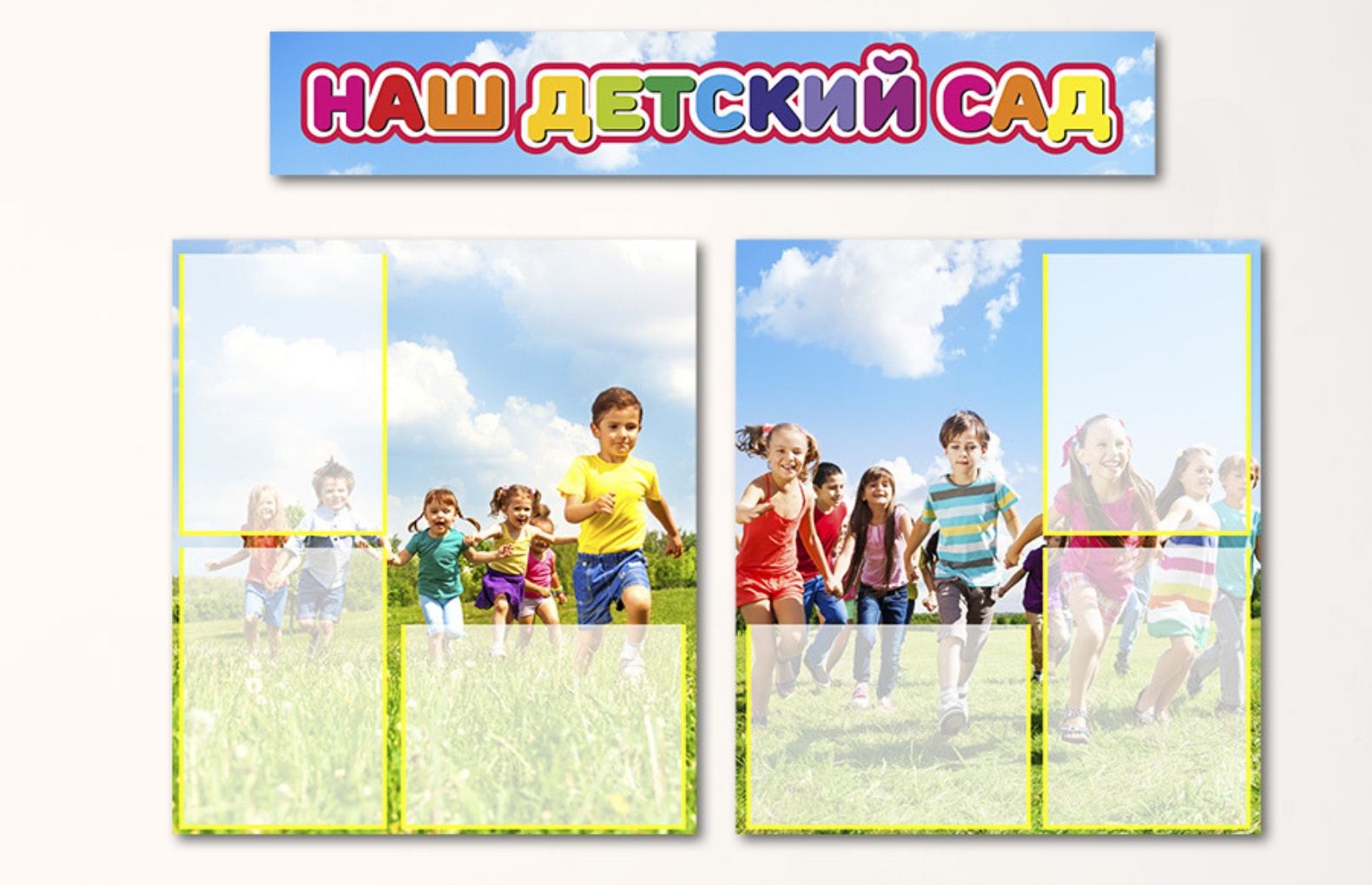 Детский сад - это не только режимные и воспитательные моменты, а также игры, общение со сверстниками, совместные увлечения. Именно такой позитивный посыл представлен на эко-стенде "Наш детский сад", выполненном в стиле фотореализм. Веселая компания улыбчивых ребят вызовет ответные приятные эмоции у любого зрителя, будь то взрослый или малыш.
