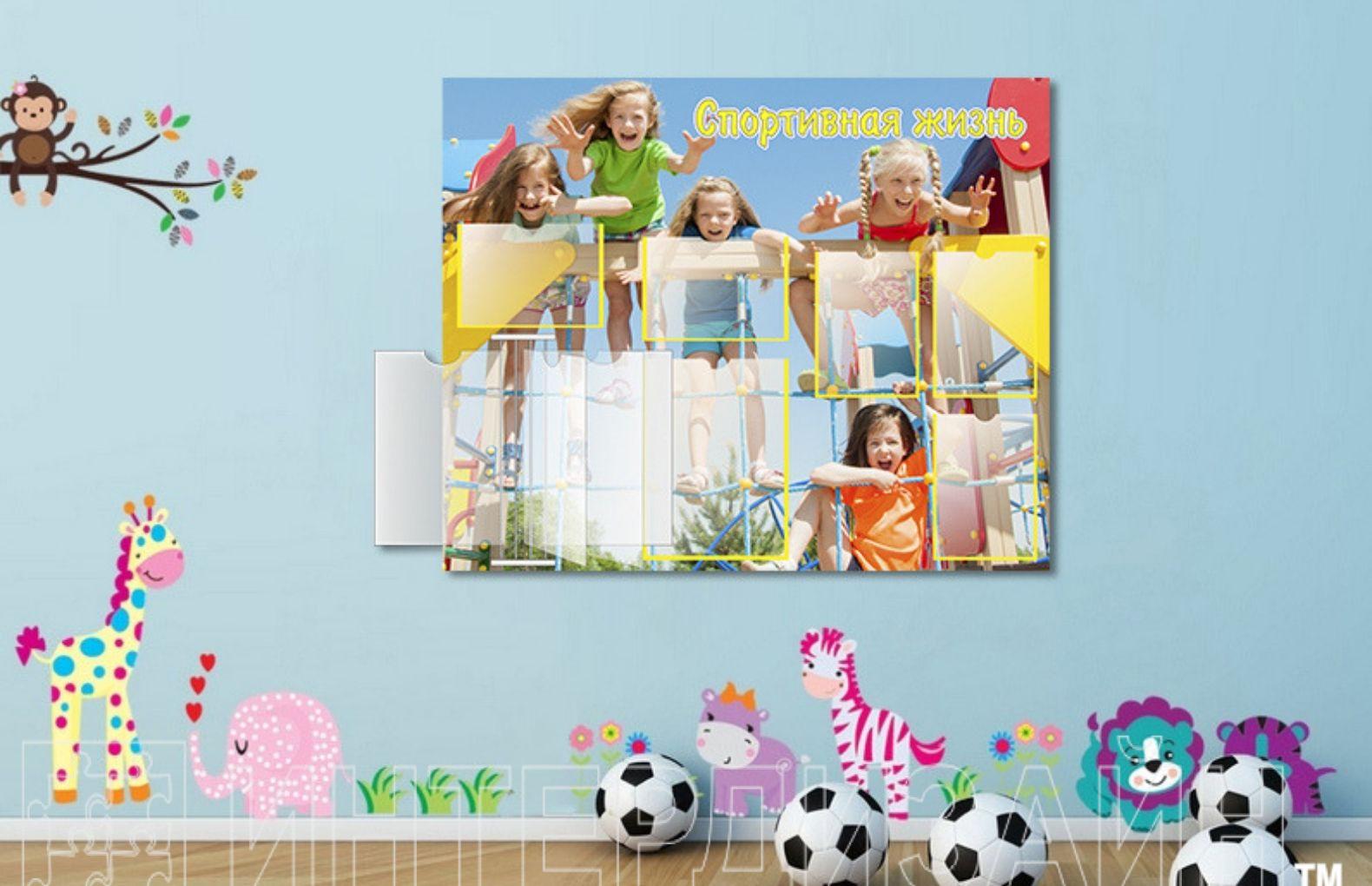 Физическое развитие - важный аспект всестороннего воспитания юного поколения. Запланируйте увлекательные эстафеты и соревнования для ребят, а всю информацию по этим мероприятиям разместите на эко-стенде на холсте "Спортивная жизнь". Фотографическое изображение веселых детей, лазающих по игровому городку удачно впишется в любой интерьер и будет стимулировать ребят к спортивным достижениям.