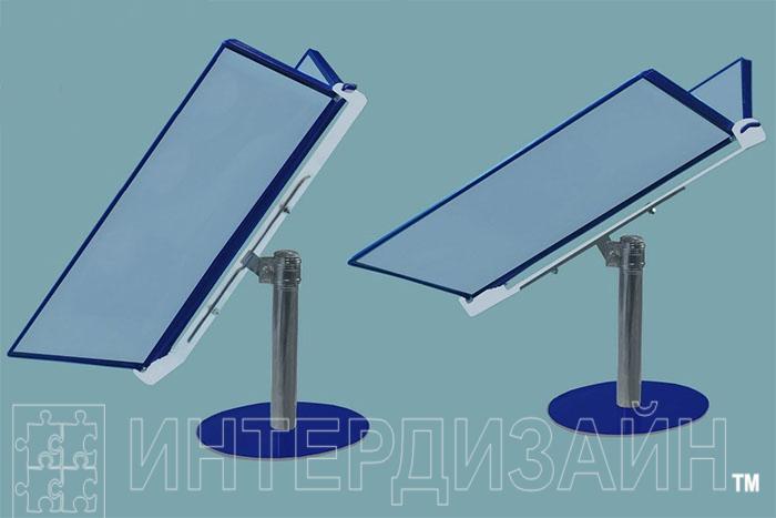 Особенность данной демонстрационной системы - изменяемый угол наклона. Это позволит избежать бликов и прочих неудобств при чтении.