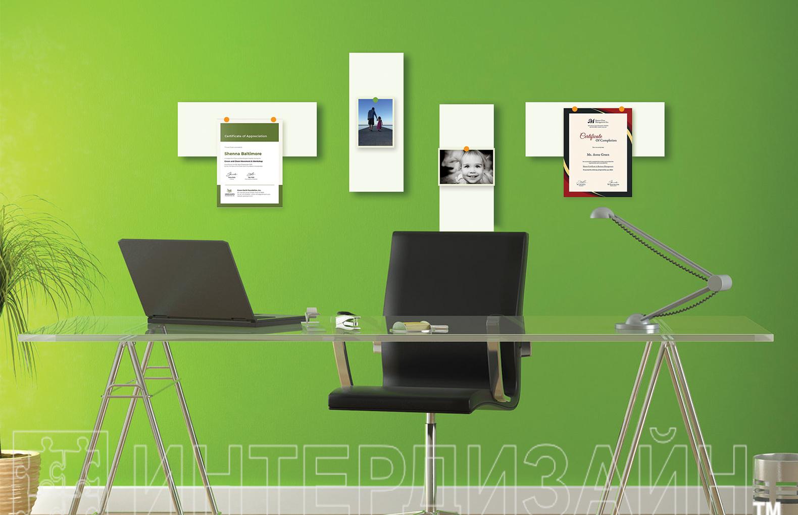 Вы можете комбинировать цветные панели или размещать их в интерьере с белыми магнитно-маркерными панелями. Такие комбинации задают стиль помещению, придают ему определенный характер.