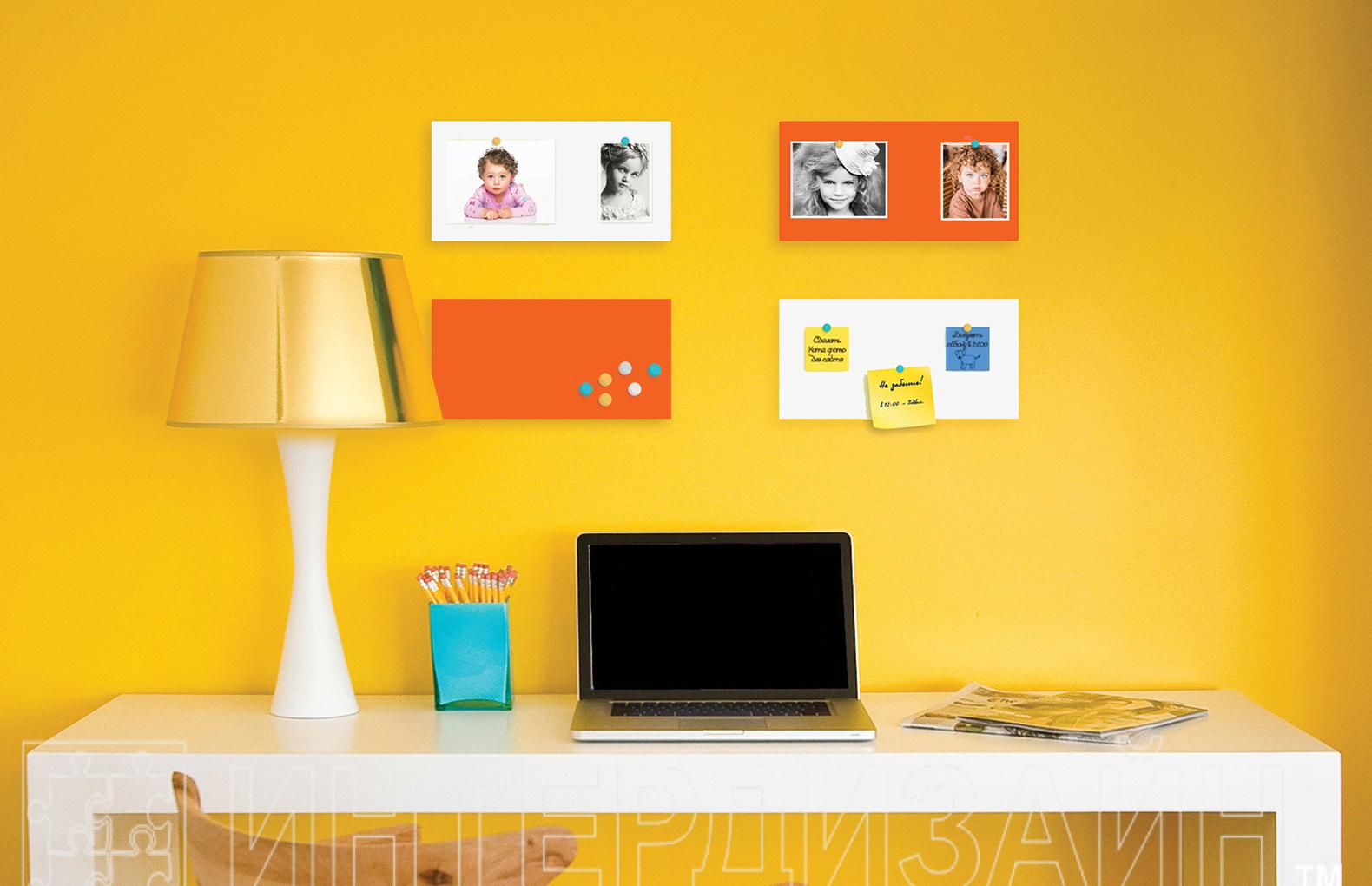 Вы можете комбинировать цветные панели или размещать их в интерьере с белыми магнитно-маркерными панелями. Такие комбинации задают стиль помещению, придают ему определенный характер.