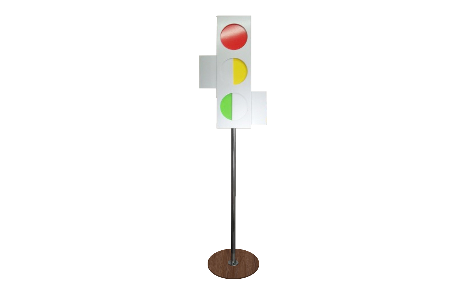 Светофор автомобильный предназначен для обучения детей правилам дорожного движения и проведения игровых занятий в помещении. Расположен на хромированной металлической стойке с двумя серебряными плашками для "переключения" сигнала в комплекте.