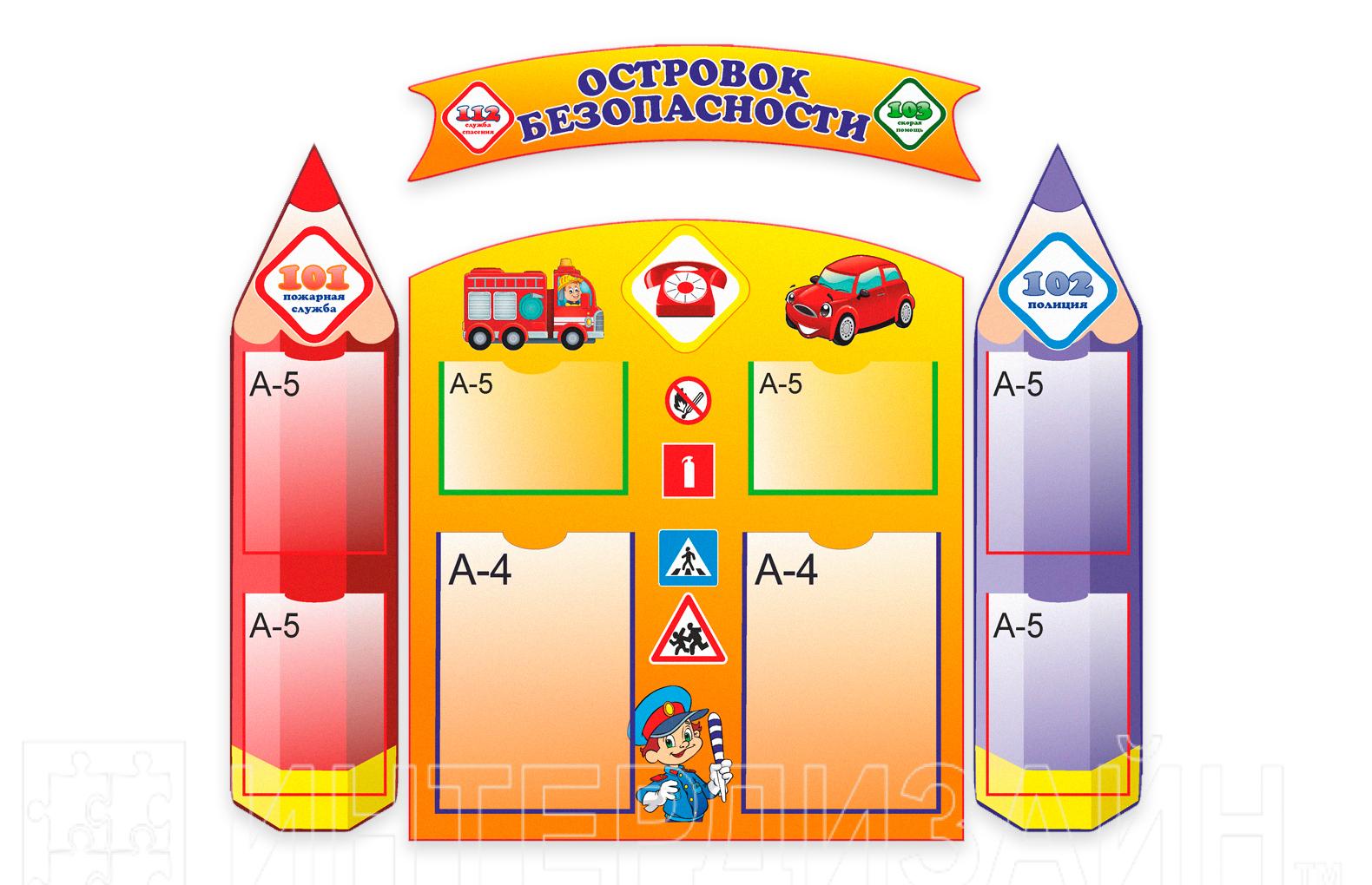 В комплекте:стенд-шапка, стенды Карандаши- 2шт., стенд центр, карманы: А5- 6шт., А4- 2шт., фурнитура для крепления