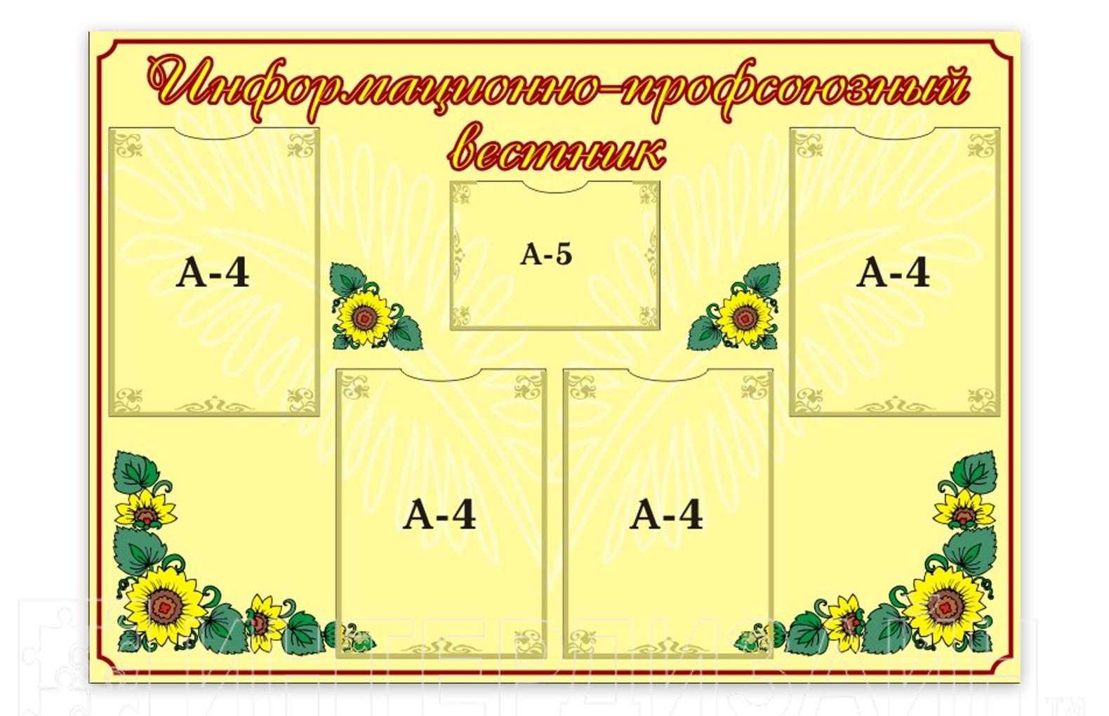 "Карманами" для вставки листов и фотографий стандартных форматов. "Карманы" изготовлены из прозрачного ПВХ толщиной 0,5 мм и надежно закреплены на стенде. Стандартная глубина объемных "карманов" 15 мм.