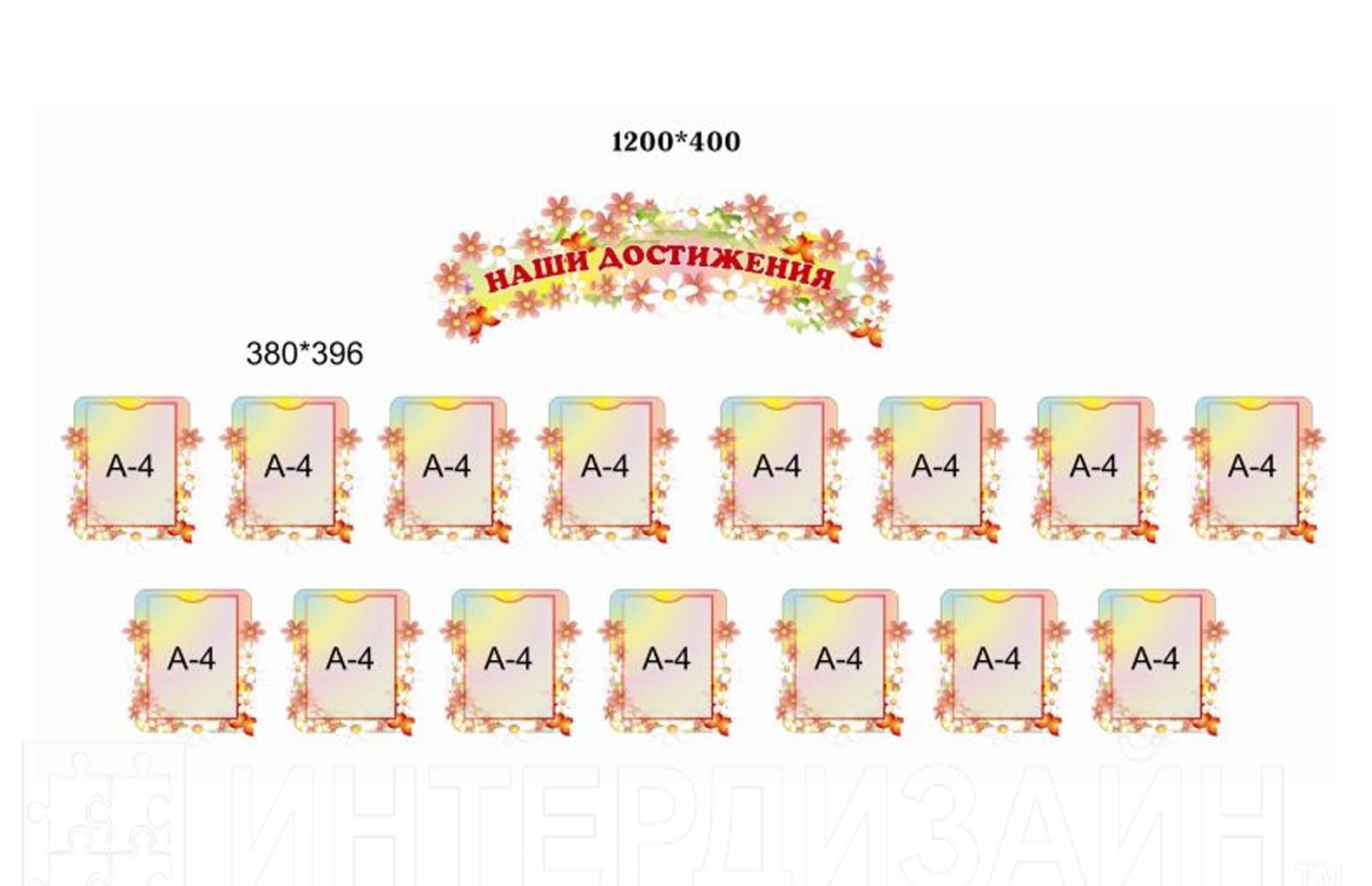 Стенд-шапка и 15 карманов А4. Материал - пластик.