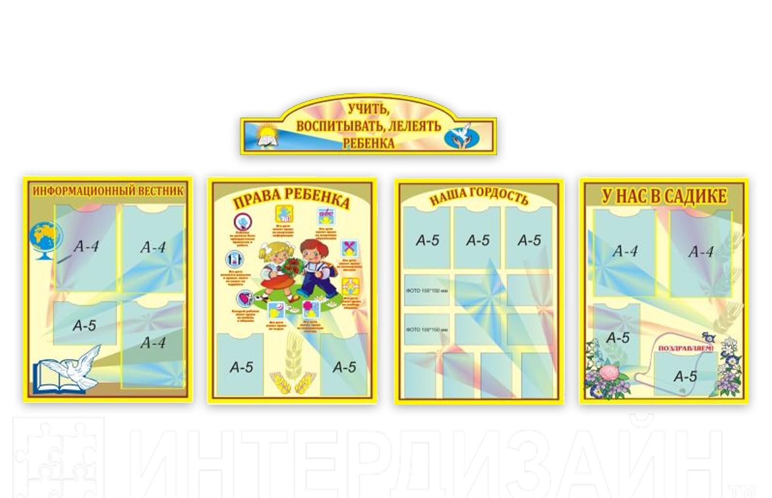 Композиция изготовлена из пластика ПВХ толщиной 3 мм. Изображение наносится на пленку или непосредственно на пластик. Дополнительно стенды композиции оборудованы "карманами" для вставки листов формата А4, А5 и фотографий 10х15. "Карманы" изготовлены из прозрачного ПВХ толщиной 0,5 мм и надежно закреплены на стенде.