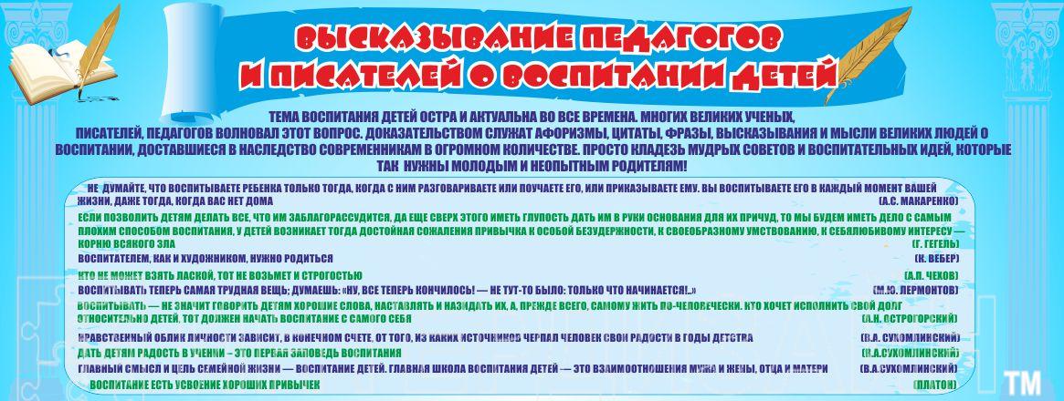 Стенд "Высказывание педагогов и писателей о воспитании детей" - Описание