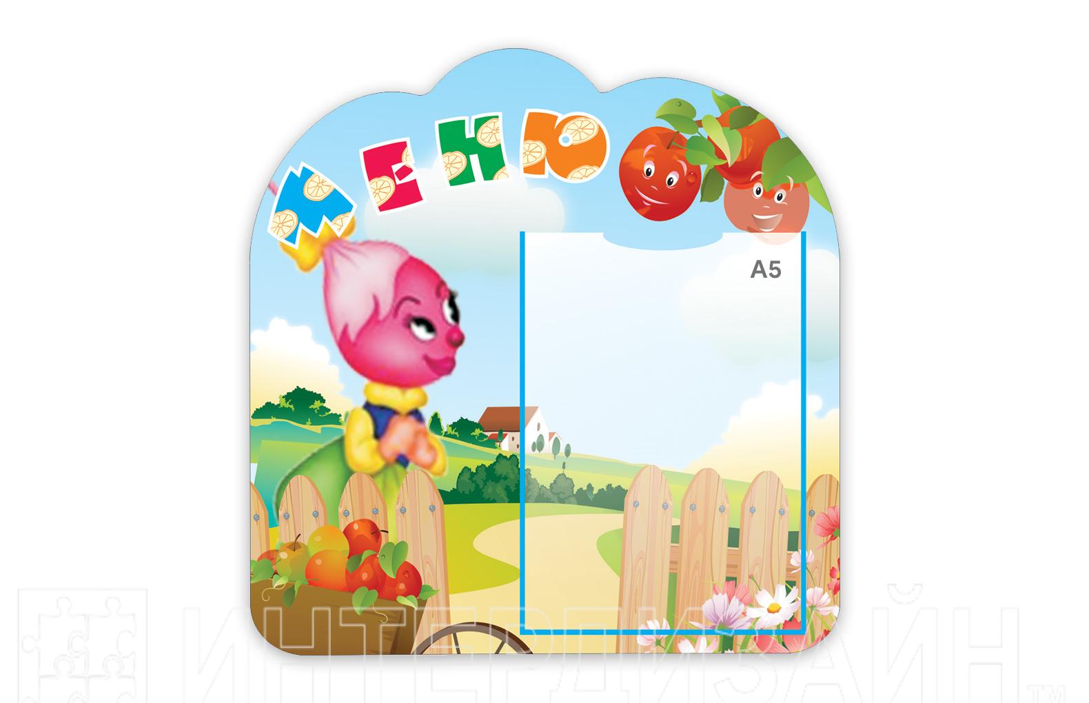 Стенд "Меню" из набора "Чиполлино" изготовлен из пластика пвх. Оборудован карманом А5 формата.