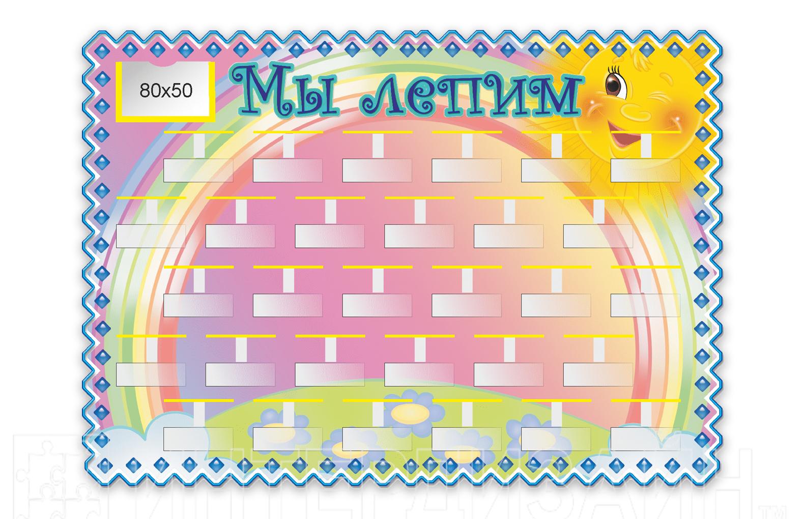 Стенд оборудован 30 полочками для детских работ и кармашком для темы занятия.