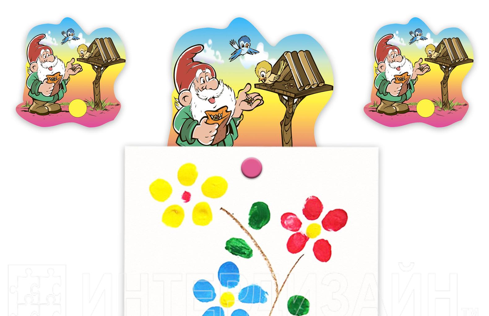 Каждое крепление имеет магнитную точку, к которой крепится рисунок ребенка при помощи магнита.