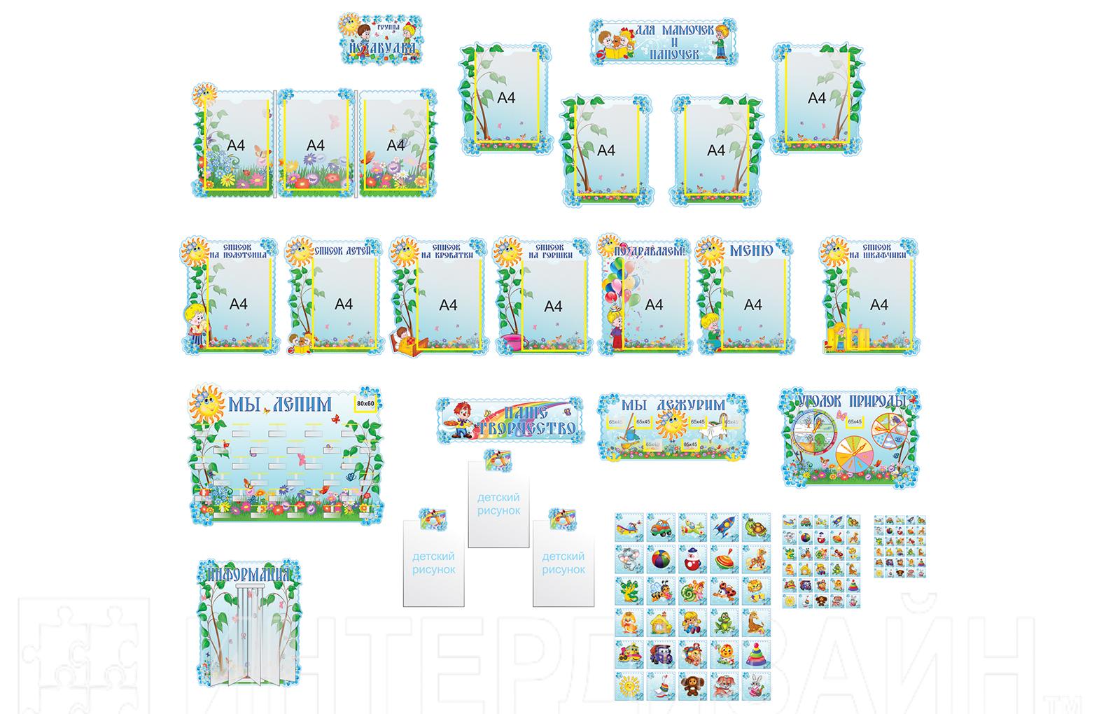 1. Композиция на 30 рисунков: стенд-шапка (520х170 мм) и 30 креплений для рисунков (100х80 мм)