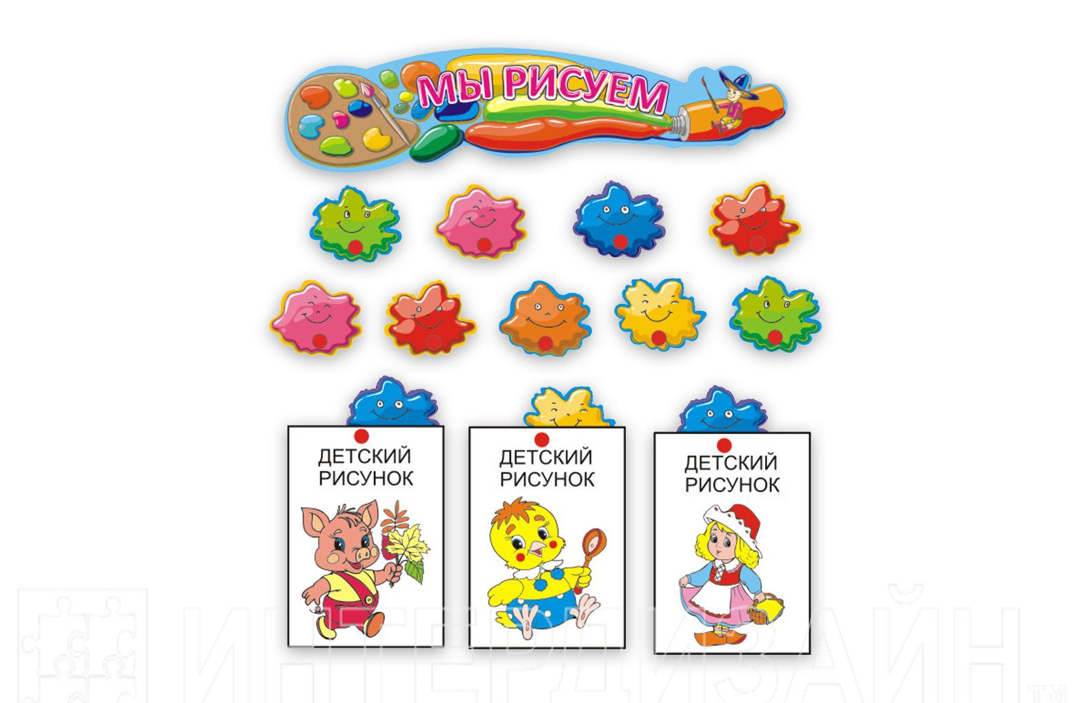 Стенды изготовлены из пластика ПВХ. Изображение - яркая, высококачественная печать. Дополнительно "Кляксы" оборудованы металлическими пластинами для крепления рисунка при помощи магнита. Комплект включает 30 "Клякс".