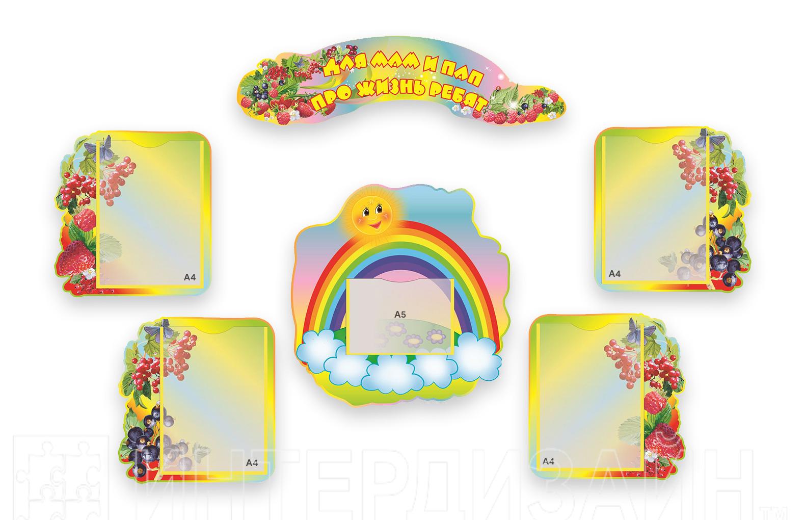 РазмерСтенд-шапка 69х19см, центр 46х47см, 4 кармана А4 33х35см