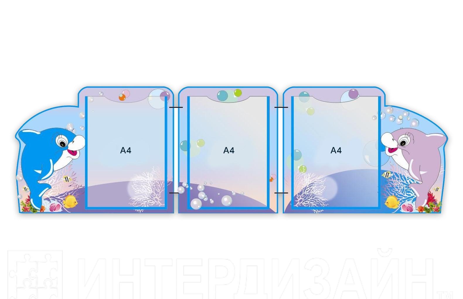 Стенд-ширма пластиковая на 3 кармана формата А4, из набора "Дельфинчики"